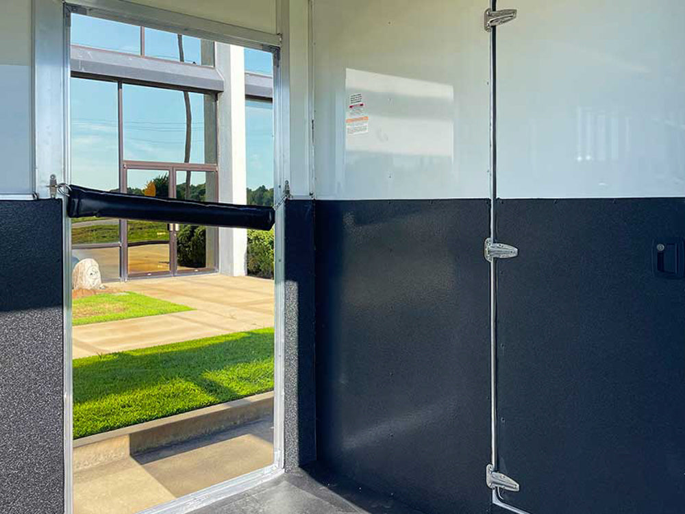 Feed your horses conveniently through two drop-down feed doors with aluminum guards, one per stall.